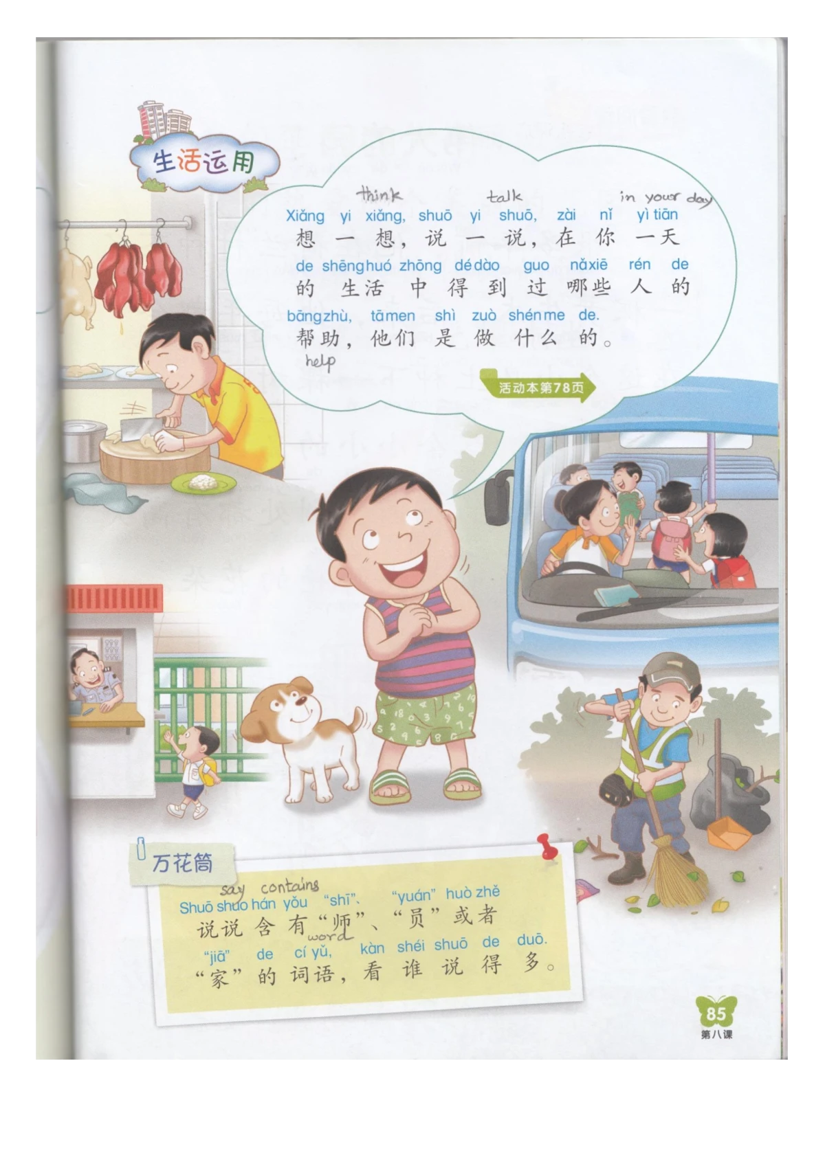 每个年级的老师可能会根据教学需要,适当调整教学内容。内容仅供学习参考,为获得完整学习体验(音视频、练习册),建议购买正版图书。