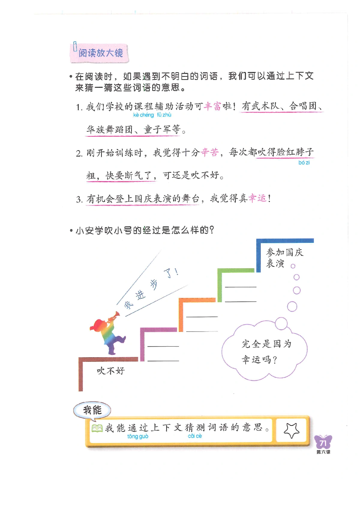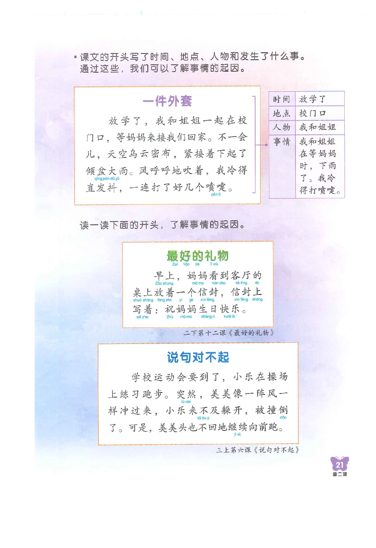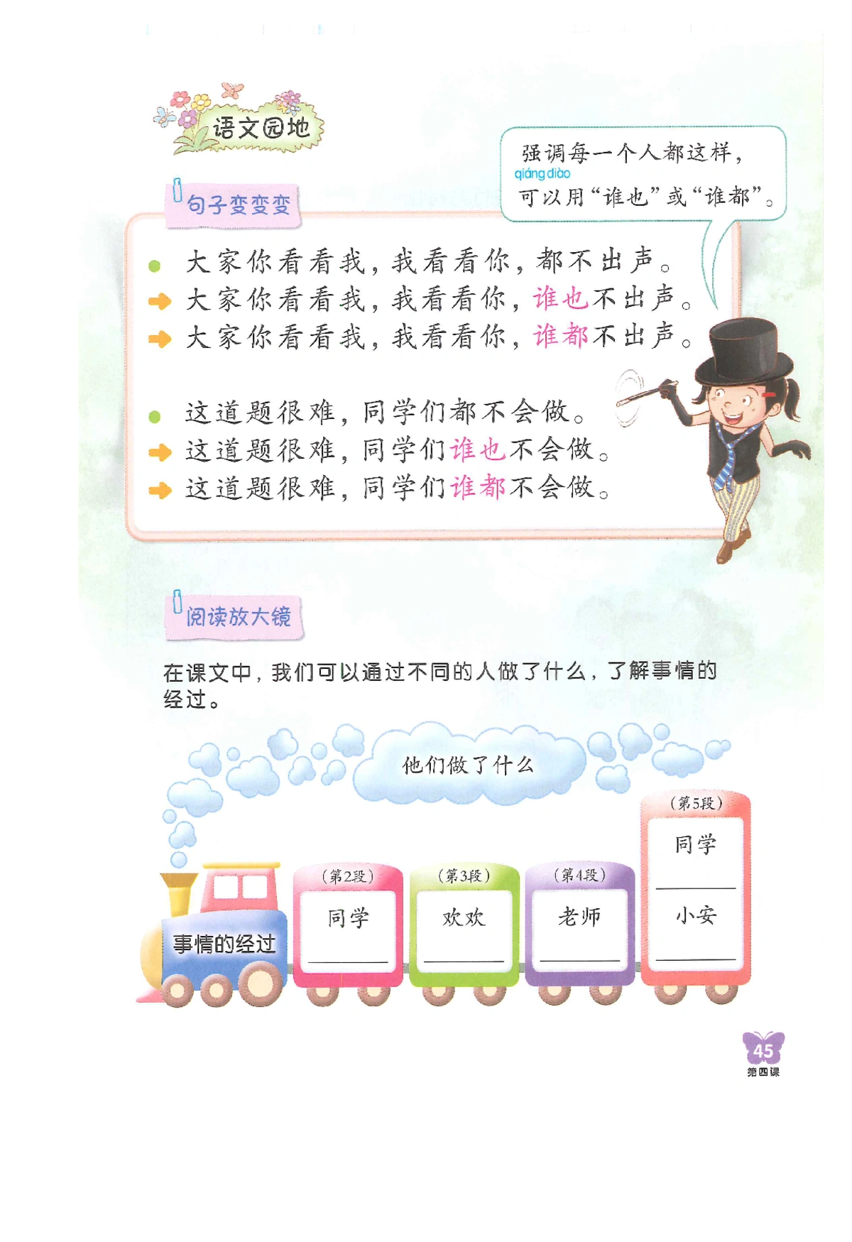 每个年级的老师可能会根据教学需要,适当调整教学内容。内容仅供学习参考,为获得完整学习体验(音视频、练习册),建议购买正版图书。