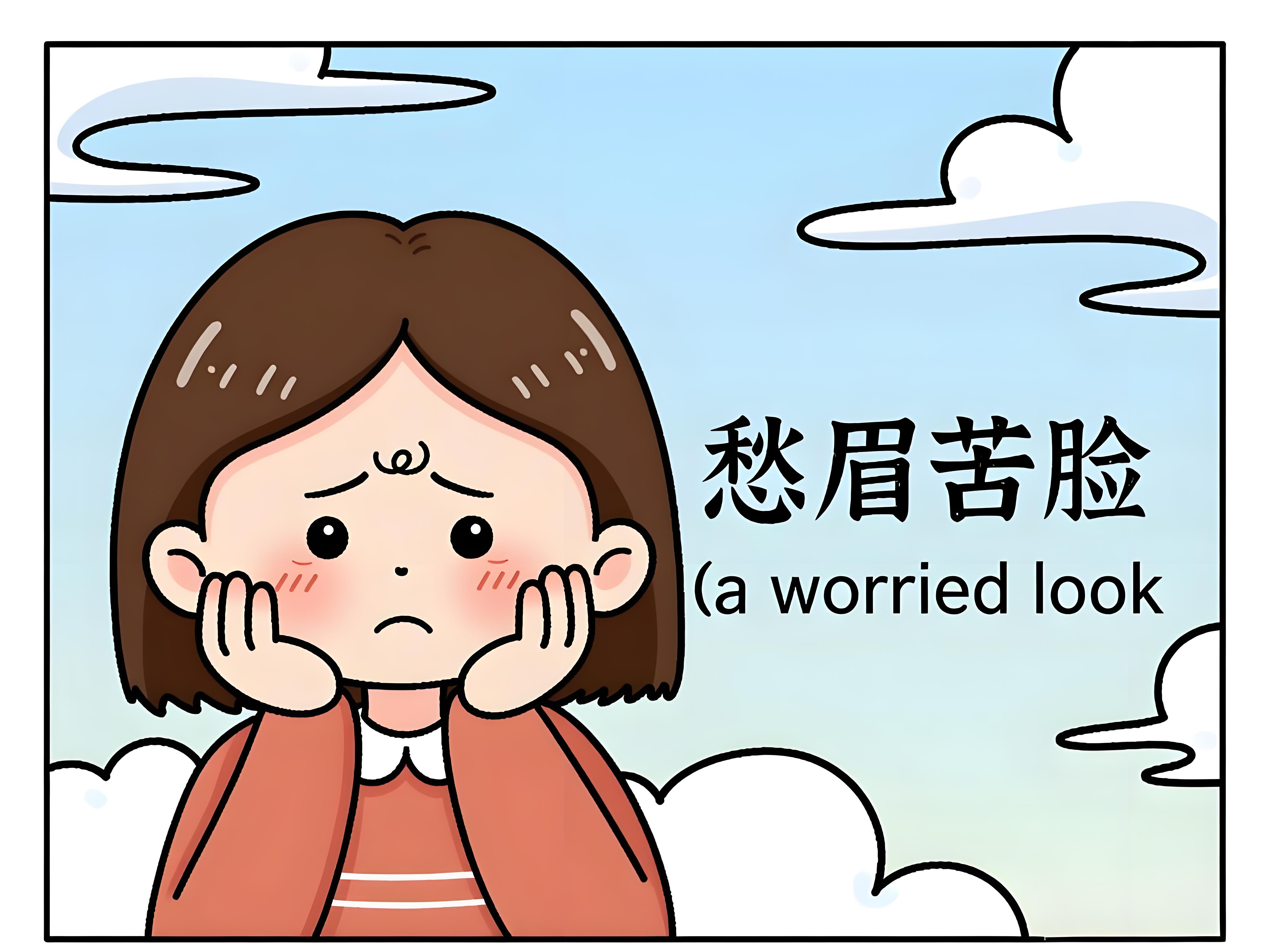 拼音 : chóu méi kǔ liǎn 年级 : K5 课程 : L4 英文 : a worried look / a distressed expression 关联汉字 : 苦 脸 句子 他整天愁眉苦脸,好像遇到了很大的麻烦。 小明考试没考好,所以愁眉苦脸地坐在角落里。 看见朋友愁眉苦脸的样子,我立刻过去安慰他。 中文发音练习/Chinese Pronunciation Practice 请朗读以下句子/Please read the following sentence: 你好 开始录音/Start recording 停止录音 / Stop recording 识别结果/Identification results: