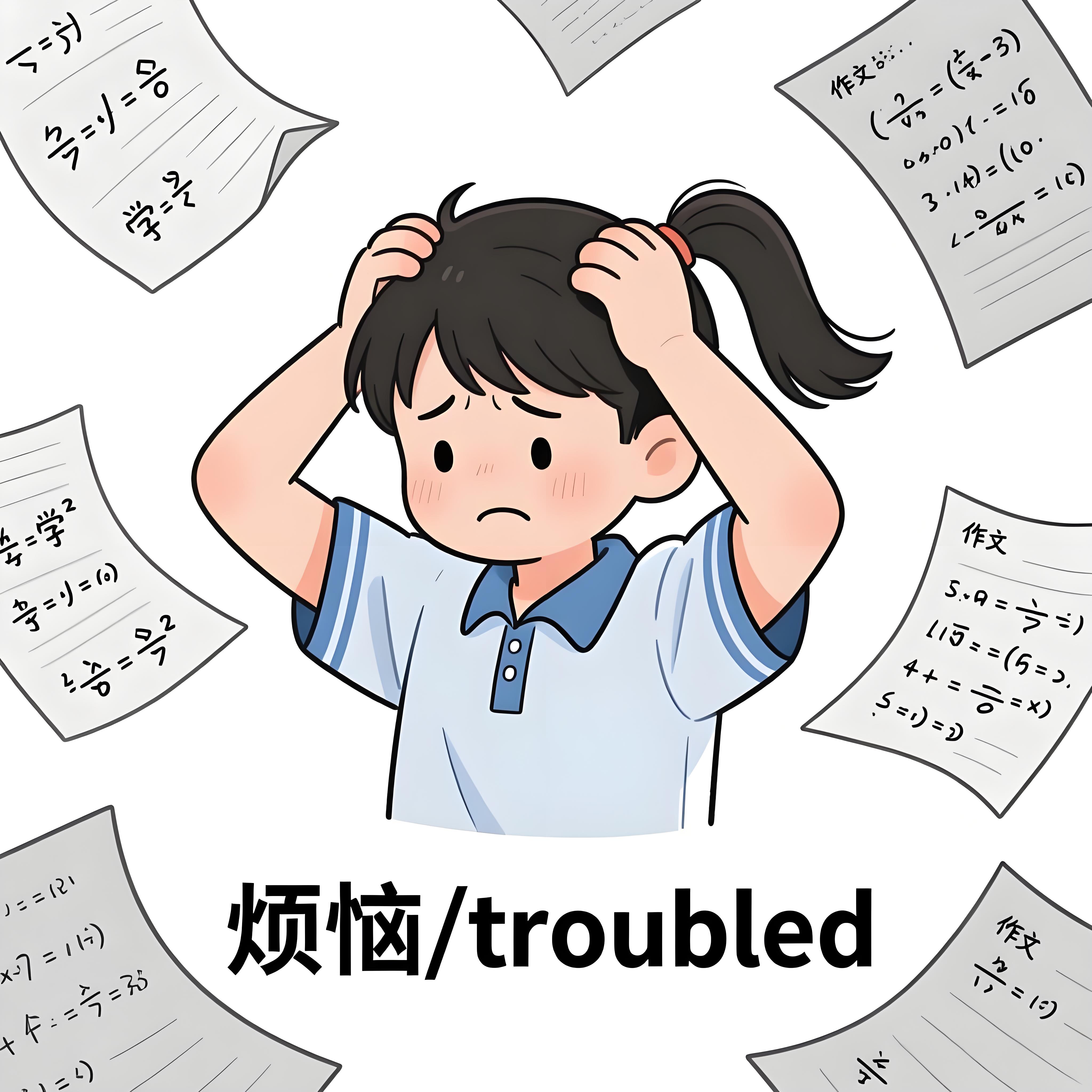 她因为考试成绩不好而感到烦恼。