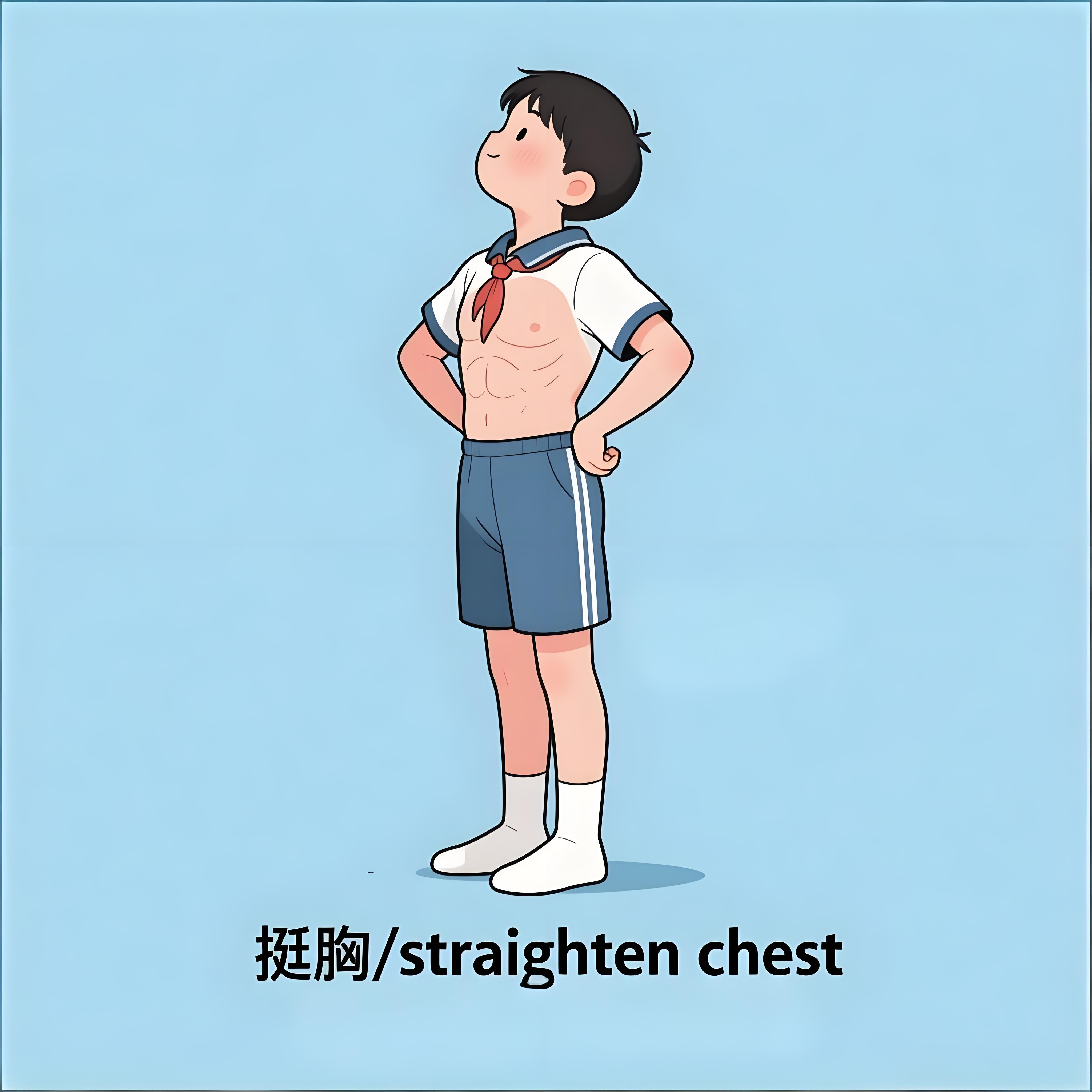 stand tall / straighten chest / puff out chest
