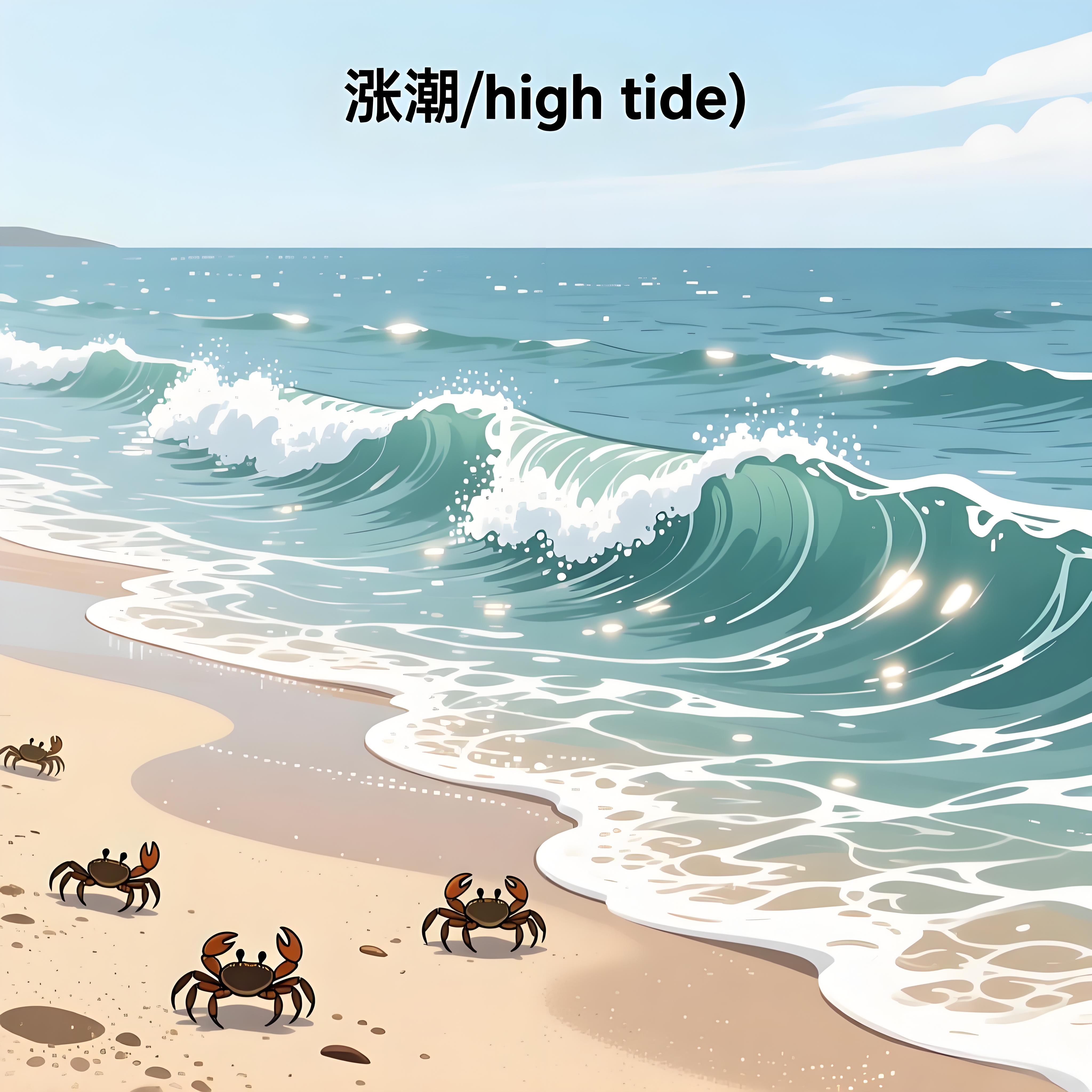 涨潮的时候,海水很快就淹没了沙滩。